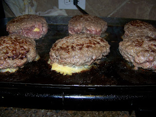 And if you give a kid a bacon wrapped tot he will want a cheese filled burger. Juicy Lucy - another dinner experiment we got off Man Vs. Food. My kids LOVE these too. My oldest tried to get me to stuff a piece of bacon in there with the cheese. I refused.